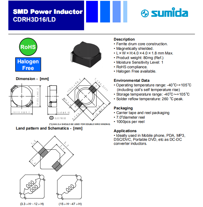 1.CDRH3D16LD磁屏蔽結(jié)構(gòu),傳統(tǒng)構(gòu)造,散熱好,低內(nèi)阻型