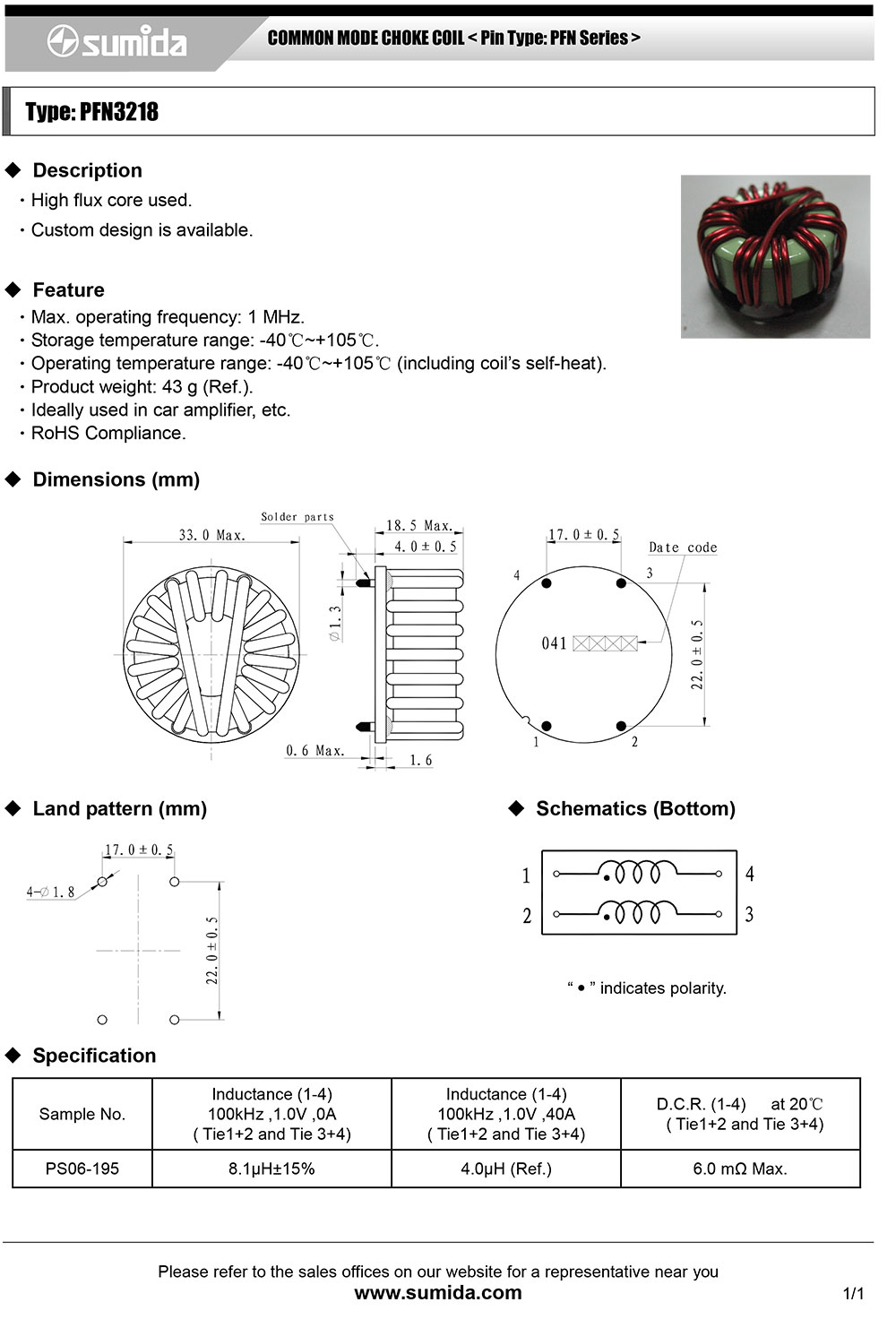 5.PFN3218有較好的直流飽和特性及吸收、消除脈沖噪聲,廣泛用于電路的差模噪聲抑制,也可以用作于數(shù)字功放的耦合電感。