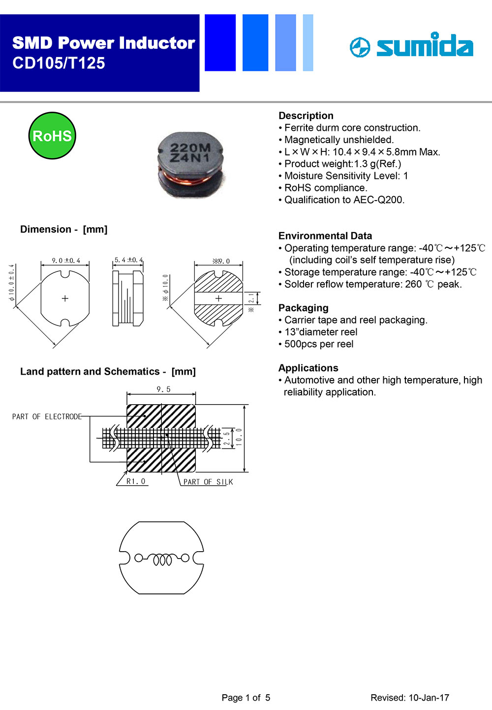 1.CD105T125非磁屏蔽結構,傳統構造,散熱好
