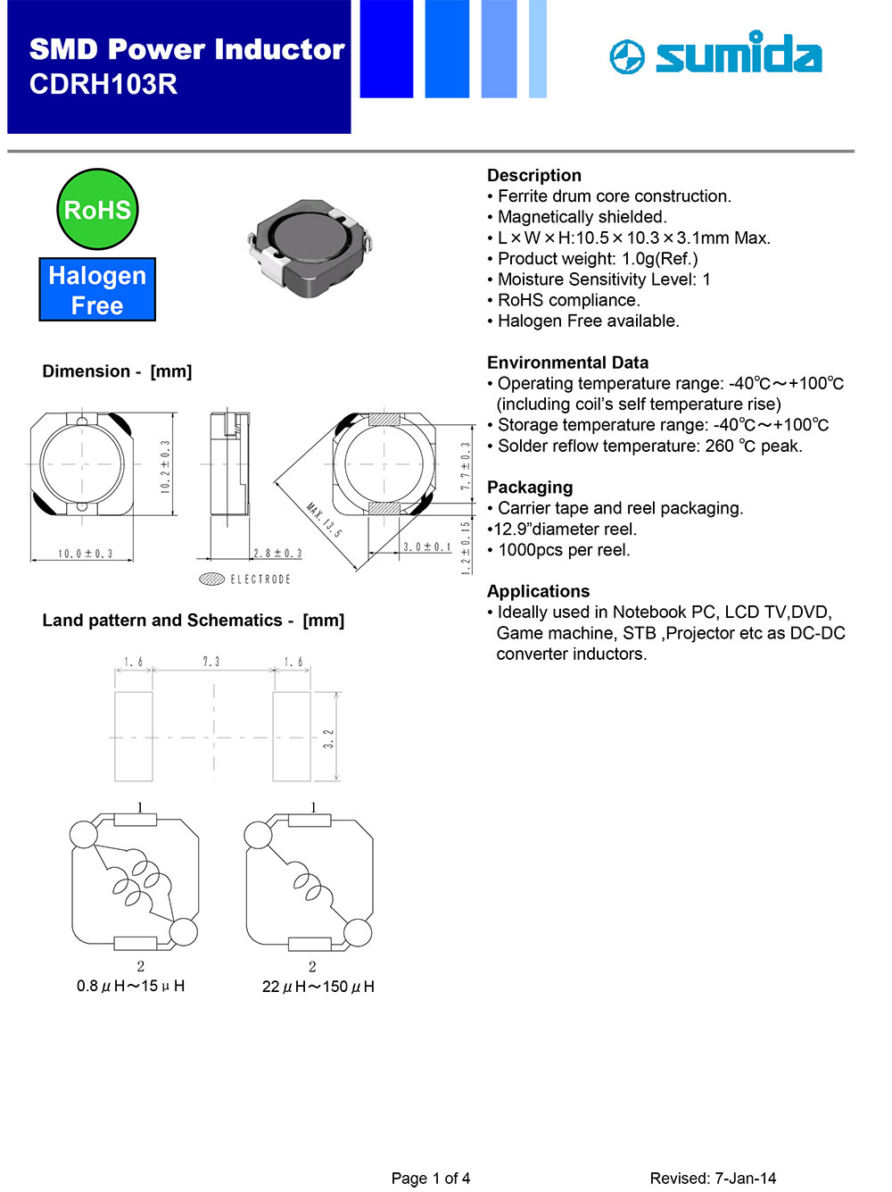 5.CDRH103R最小包裝1KPCS 6.廣泛應用于各類電子產品的DC-DC電源供電模塊