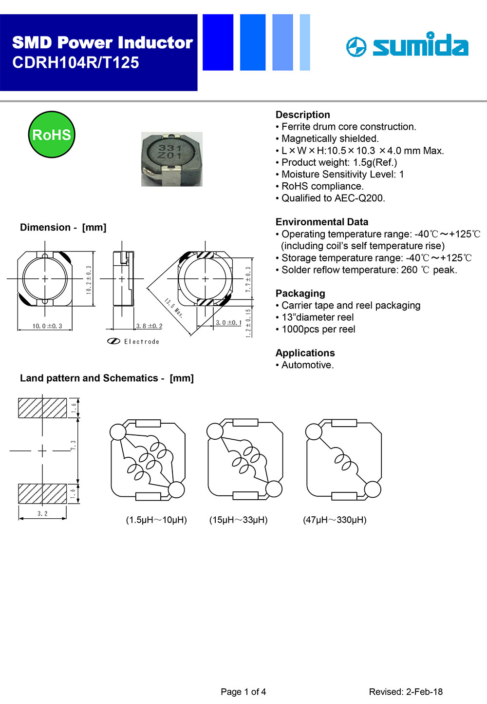 1.CDRH104RT125磁屏蔽結構,傳統構造,散熱好