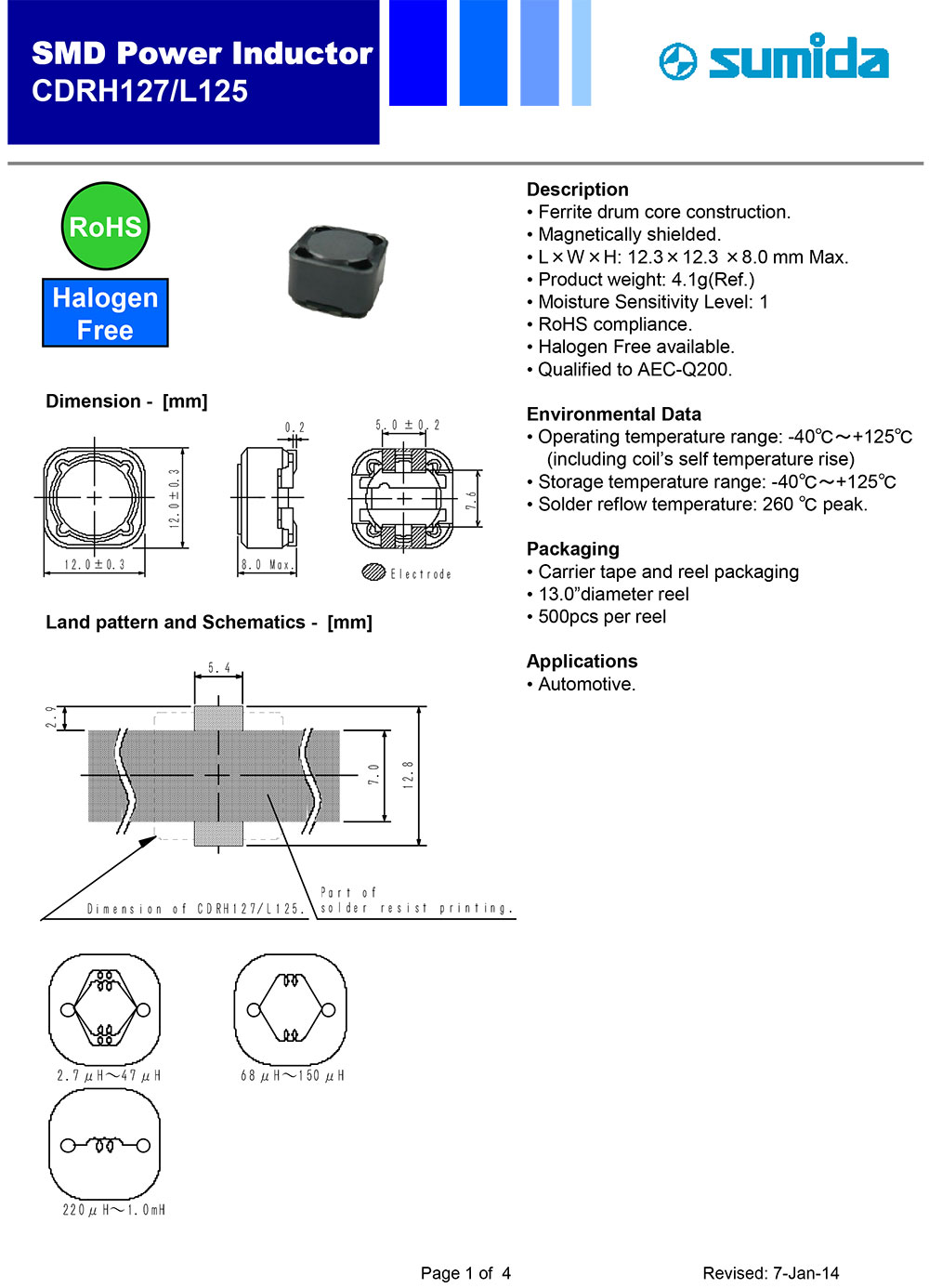 3.L*W*H--12.3*12.3*8.0mm 4.RoHS、AEC-Q200