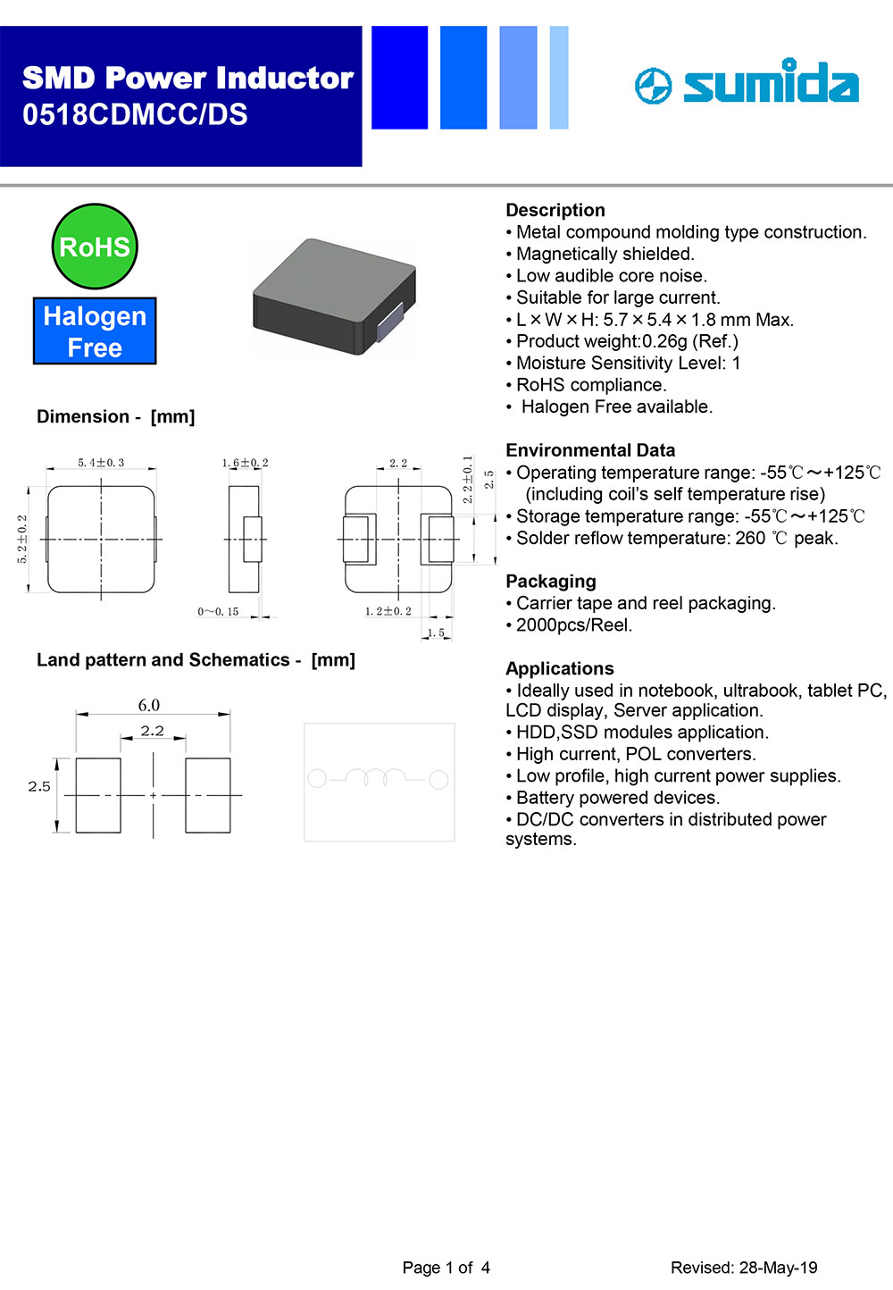 1.0518CDMCCDS一體成型結構,低內阻、大電流,散熱好 超薄型
